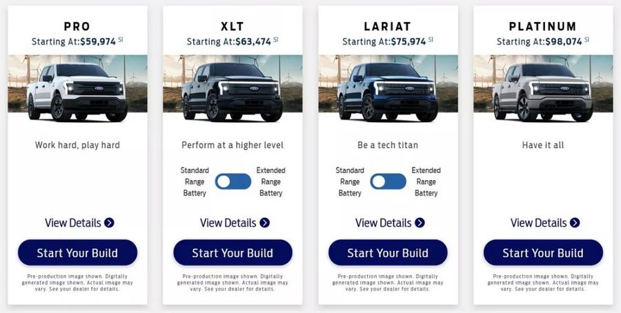 Mặc dù cả 4 phiên bản của F-150 Lightning đều tăng giá nhưng mức tăng ở 3 phiên bản còn lại không cao như bản tiêu chuẩn. Cụ thể, giá của biến thể XLT hoàn toàn không thay đổi kể từ tháng 12, trong khi bản Lariat hiện chỉ cao hơn 1.500 USD (35 triệu VNĐ) so với thời điểm đó. Tương tự, bản Platinum cao hơn 1.200 USD (27 triệu VNĐ) so với cuối năm ngoái.
